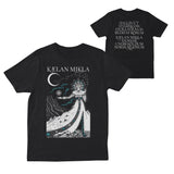 Screenprinted on a black Gildan Softsyle T-Shirt.