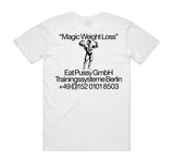 Eat Pussy GmbH design with front and back print on a white Gildan 100% Heavy Cotton T-Shirt.