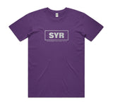 Sonic Youth 'SYR' design with silver metallic ink print on a purple Gildan Heavy T-shirt. 100% cotton.