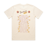 EU Tour 2025 design screenprinted on a natural AS Colour T-Shirt. 100% colour.